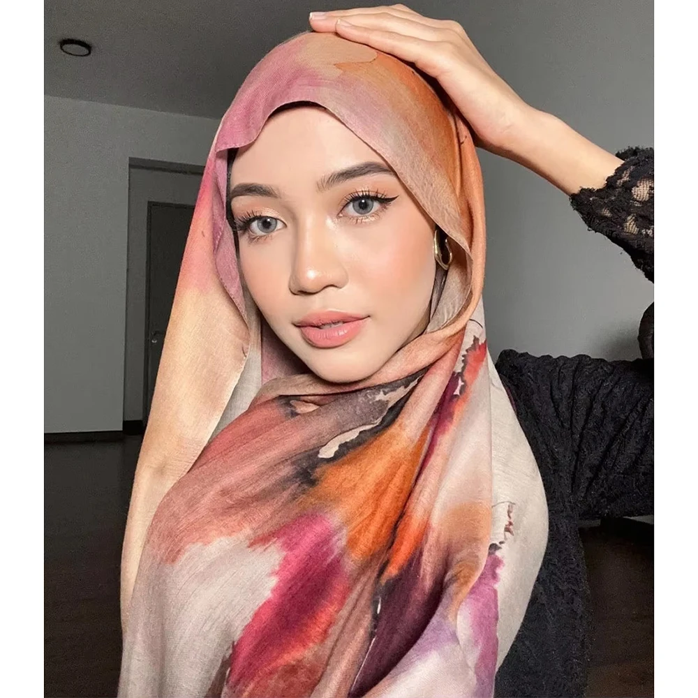 Watercolour Floral Printed Modal Breathable Light Weight Soft Cotton Rayon Viscose Woven Modal Muslim Women Shawl Hijab Scarf